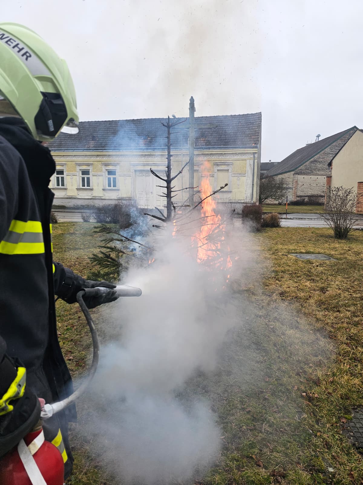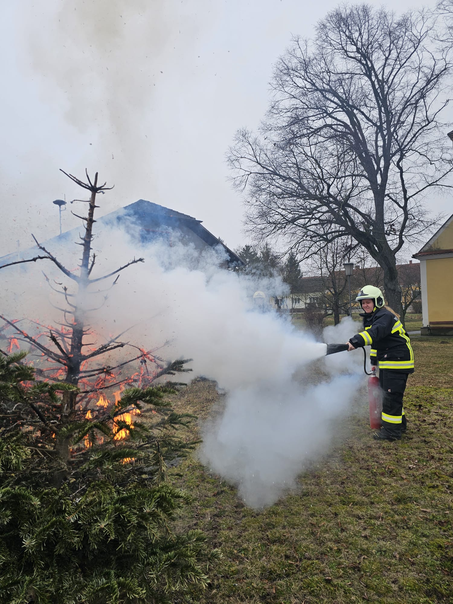 Handhabung von verschiedenen Feuerlöschern war das Übungsthema.