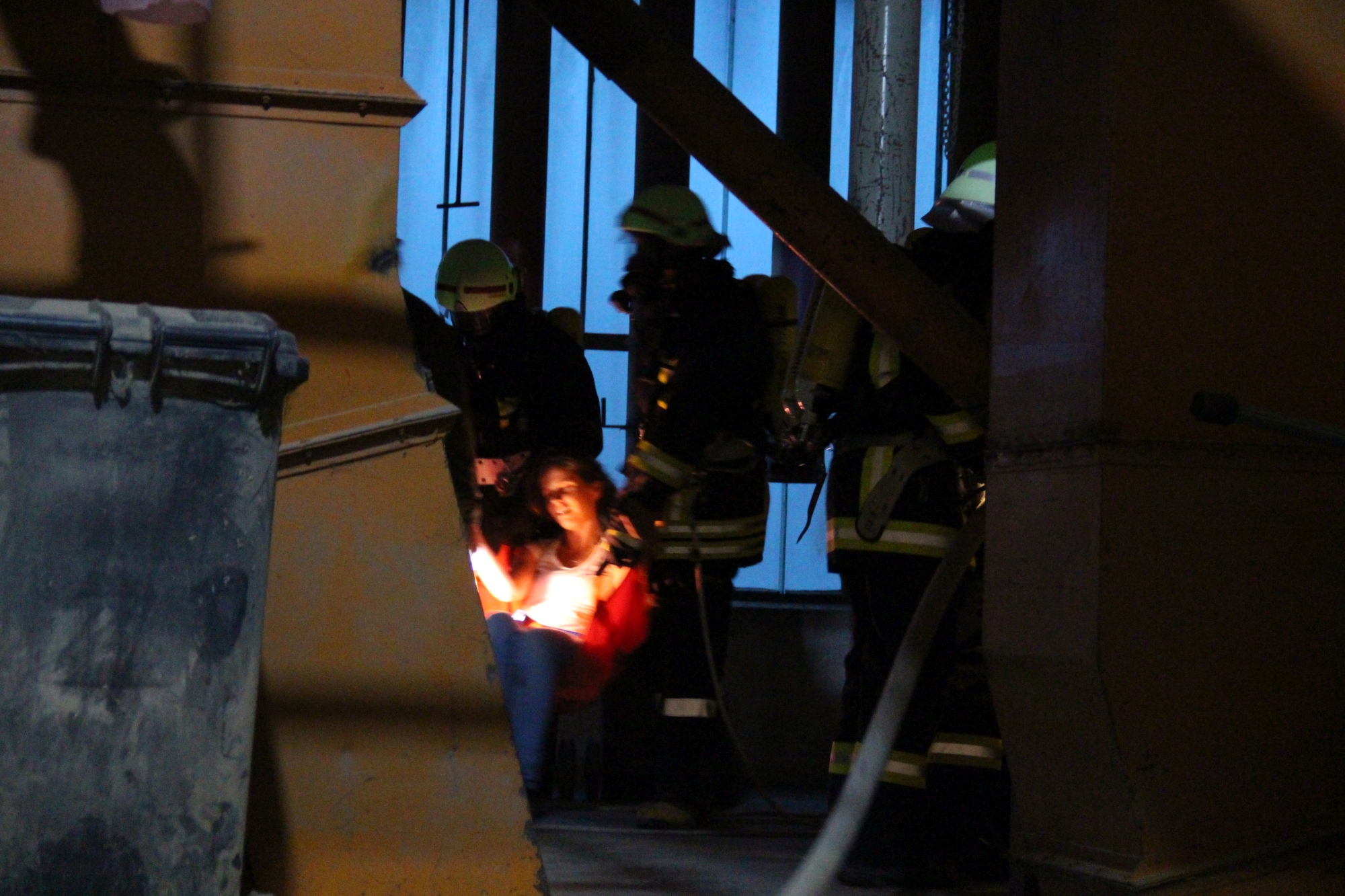 - Retten einer Person aus dem Lagerhausturm mittels Atemschutztrupp
